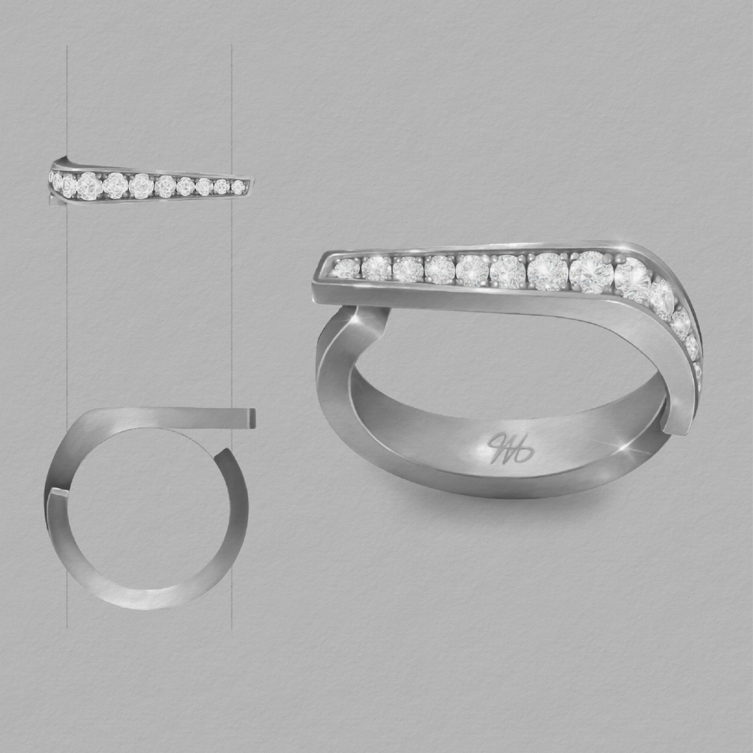 The largest gemstone in the collection averages 0.072ct (2.7 mm), chosen to enhance light, rhythm, and proportion.