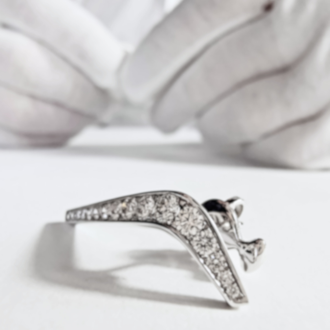 This style, now an integral part of my creative approach, has proven surprisingly adaptable to the world of jewelry, bringing a futuristic edge to each piece. The forms emerge from a dance of fragments which, in a balance of strength and harmony, come together to shape the jewel.
